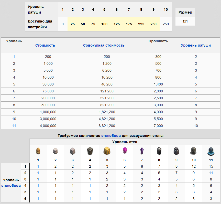 Стена главный сдержеватель врагов. Увеличивайте её уровень, она поможет сохранить вашу базу.